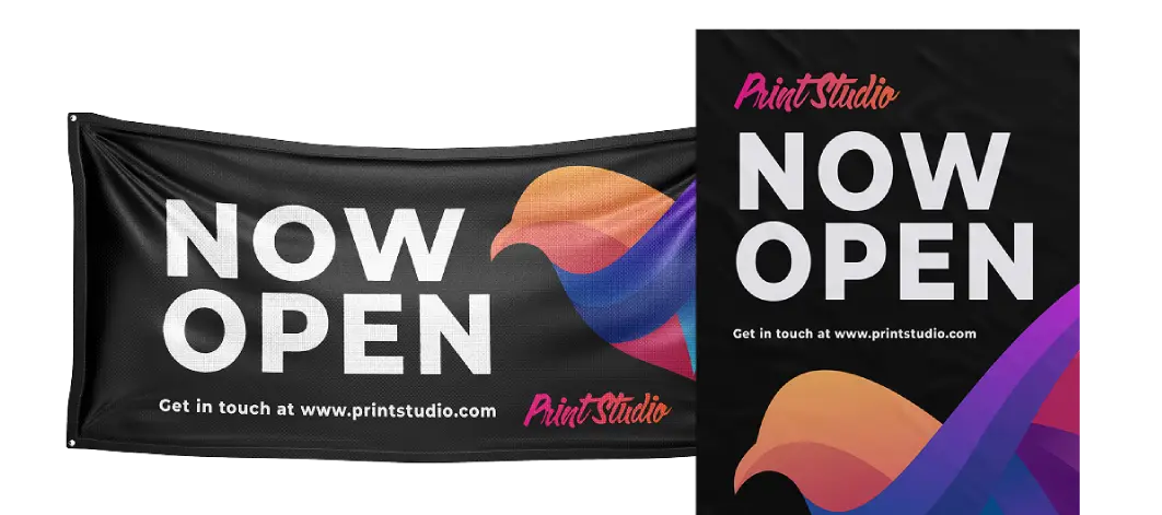 Create custom banners and promotional signage for your business. Perfect for storefronts, displays, trade shows, and in-store marketing.State of the art, high-resolution printing ensures bold visuals and lasting durability.