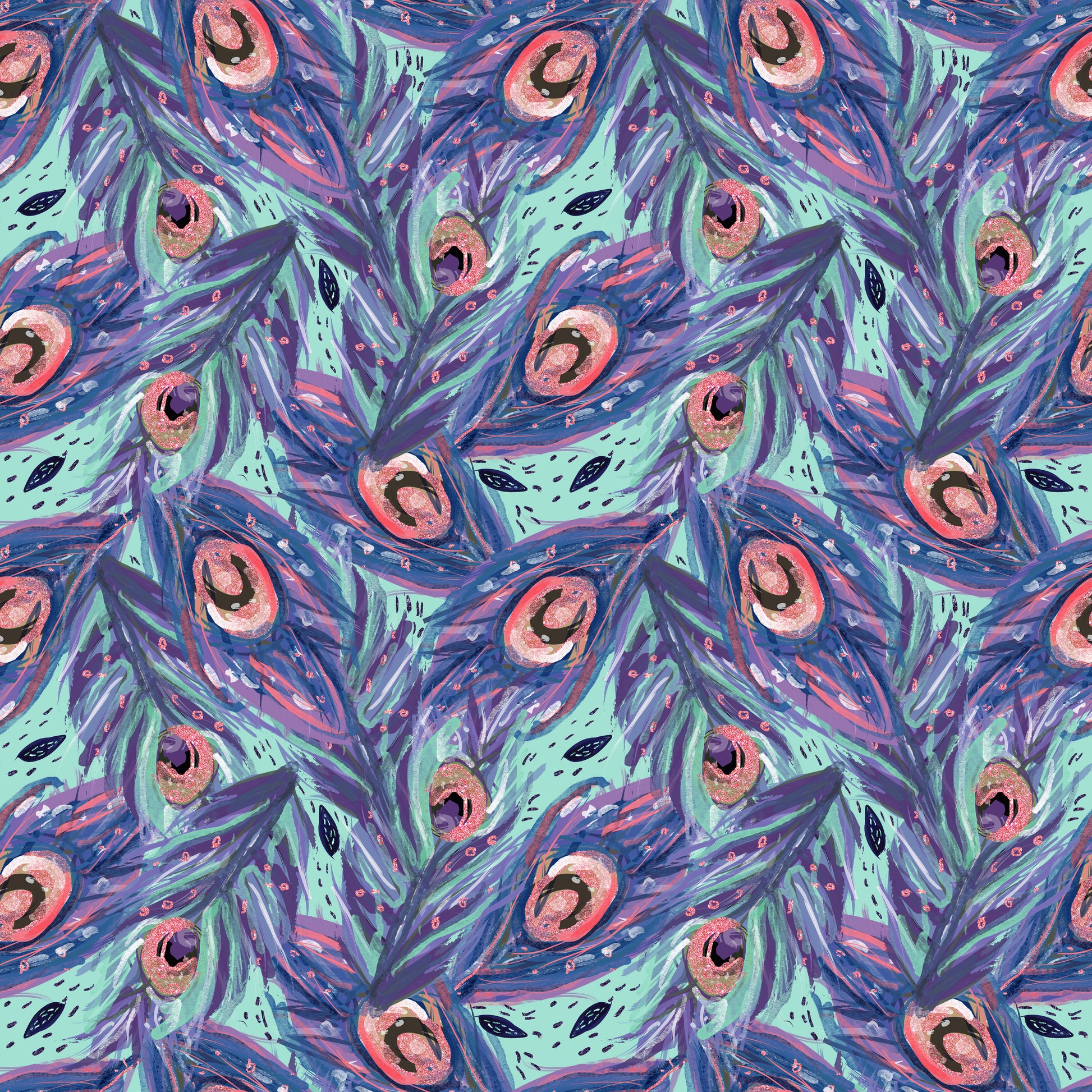 Watercolor Peacock Feathers 12x12 Patterned Vinyl Sheet